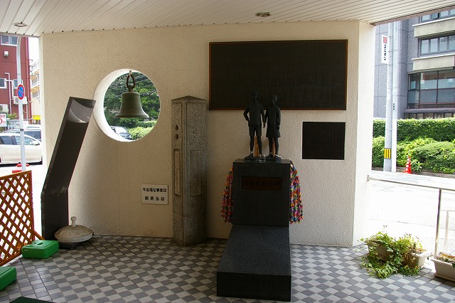 YMCA2号館の玄関の外、入口に背を向けて、ひっそりと立っています。 ここは、高級軍人や官僚の子女がかよっていた済美国民学校(小学校・幼稚園)があったところです。 1872年創設の開成舎を前身とする陸軍偕成(行)社(豪華な庭園や食堂等を備えた将校クラブ、当初は次の明治天皇御用井あたりにあったようです)の経営するこの学校の歴史は、原爆投下によって幕を閉じました。 被害は大きく、給食日のため登校していた児童、職員、駐屯兵あわせて160人以上、骨も残さず全滅。そのため被害の内容も全く不明。 |