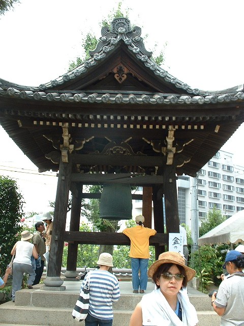 そしてその西にある鐘楼は、ハリが折れたままの被爆の痕跡を残しており、その中の「八時の鐘」と呼ばれるつり鐘は、今もノー・モア・ヒロシマと刻まれています。 左の写真は2002年8月6日のフィールドワークにて。 |