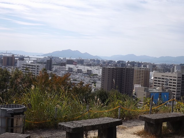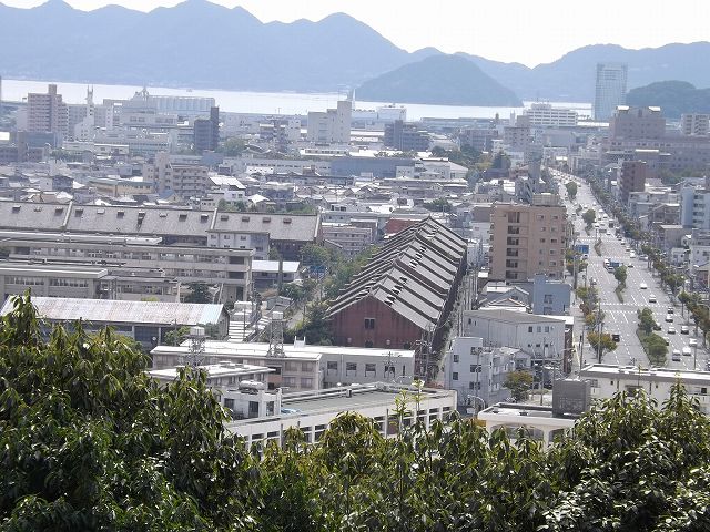 よく大久野島(毒ガスの島)は見えないかと、聞かれますが、遠い上に小さい島などで、残念ながら見えません。「ヒロシマの今から過去を見て回る会」も何度かフィールドワークしていますが、「毒ガス島歴史研究所」のホームページにすばらしい「大久野島戦争遺跡案内板」も出来ていますので、興味のある方はそちらを開いて下さい。 |
