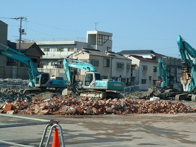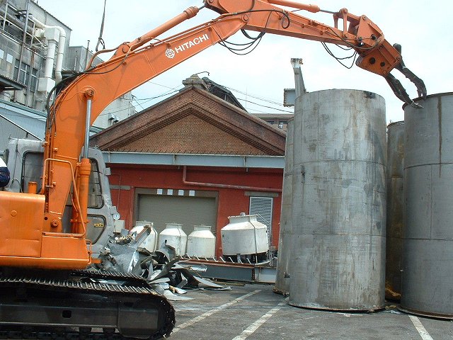 2007年2月24日カルビーの広島工場は廿日市市へ移転し、この建物は閉鎖されたと報じられ、今まではフェンスに囲まれていましたが、2007年6月4日、訪れたところ、ごらんのように重機が入っており、現場で聞いたところ、7月に解体に取り掛かるとの話、事務所に電話したところ解体は9月だろう、とあまり自信の無いような返事でした。