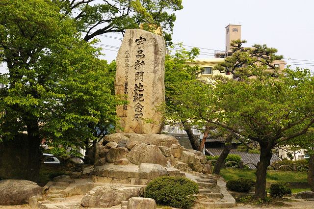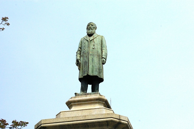 大正四年十一月三日、宇品港をつくるなど広島のためにつくした翁のりっぱな業績を記念するため、設計図を手に堂々と広島湾をのぞむ翁の銅像がたてられたのであります。