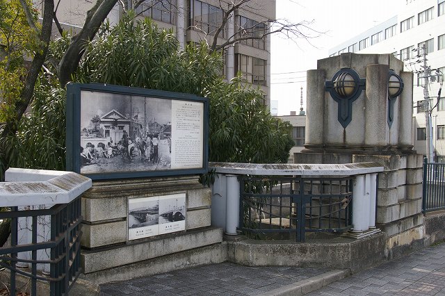 橋は1885年明治天皇行幸の際に架設(建て替え)されたのでこの名前がつきました。 1986年に旧御幸橋は解体され、派出所も1992年までありましたが、今では跡形も無くなっています。左のように欄干と写真がおいてあります。