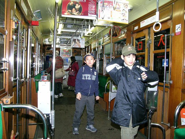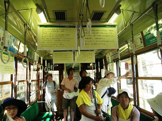 左は2006年8月6日、被爆電車に乗って。 |