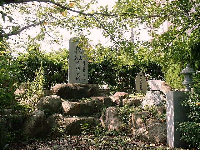 | 新幹線口から元JR社宅があった広大な空地の「歴史の散歩道」がわに、ぽつんと樹々に囲まれて残されている。 右の写真は2008年9月24日。 表) 陣歿軍人軍馬追悼之碑 陸軍中將 鈴木莊六書 (裏) 騎兵第五聨隊創立以来各戰役ニ於ケル戰病没軍馬ヲ追悼スルノ餘リ西伯利亞出征凱旋ノ秋建之 大正九年十一月十八日 騎兵第五聨隊将卒一同 碑文はきれいに磨かれている。「将」に文字が「將」となっていないのは? その左に「忠節 師団長 長谷川美代次謹書」という碑、その右に、「騎兵第五聨隊跡」という碑、 表に「愛馬は眠る」、裏に「自明治二三年 至昭和二〇年」という碑がある。手前の柱には、昭和五十五年三月 もえぎ会、と記されている。 左の写真は2008年9月24日 |