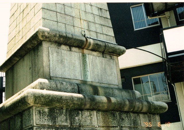 小さな公園にあります。「平和塔」となっているので、見ただけでは何のことか判りませんが、まさしくこれは「日清戦争凱旋碑」(凱旋碑と書いてあった)なのです。そしてこの前の宇品へ向かう通りを、御幸(みゆき)通りといいます。1885年5月完成、明治期の道としては圧倒的に広い道です。軍用を意識して造られたことは宇品港を築港した千田貞暁の政府への国庫補助を要請する手紙(1886年)「この工事は一つの地方のことではない。また近隣諸州にわたる交通旅客の利益だけではなく、広く全国一般の兵務にとりても大便益になる」からも判ります。 この凱旋碑の前を通って兵隊は宇品港から大陸に送られていきました。このあたりまで町の名は宇品御幸(うじなみゆき)といいます。御幸とは天皇の行幸から来ているのは判りますかな(最近は質問しても判らない人が多いようで喜ばしいことかも知れません)。 |