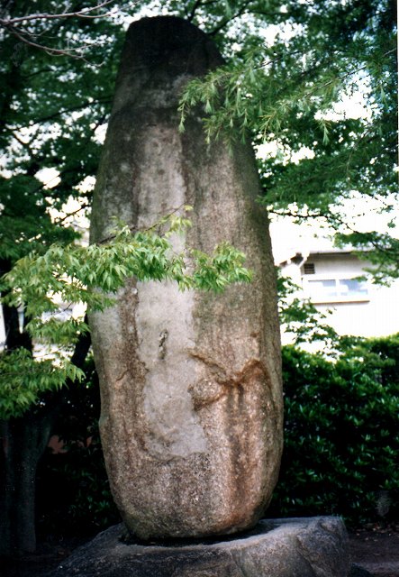 御幸通りから宇品小学校正門に入ると左手のグランドわきに、表に文字の消された跡のハッキリした自然石の「碑」がある。裏を見ると「紀元二千六百年紀念 宇品尋常高等小学校職員児童父兄建之」とある。皇紀二千六百年を記念して建てられた碑だ。 小学校内の「戰役記念碑」や「忠魂碑」については、アジア大会を前の1991年に、「教育現場に戦争を称える内容の碑がたっている」との教組等の指摘もあり、市内の学校には8校に9基、そのような碑が立っているのが判明し、「撤去・移転」か「平和教育の教材として活用するか」が問題になったが、結果、教育委員会によって過去の歴史を学ぶものとしての「説明板」が添えられている。 が、ここのは文字が消してある。何と書いてあったのか憶測するしかないが、「説明板」では処理出来ないほどの凄まじい文句があったのではないか?、と思われたが、この指摘により朝日新聞が調査してくれた。(1998年2月24日付け) 「皇運扶翼」という文字だったそうです」とは校長が地元の人から聞いた話だという。「皇運」とは皇族の運、「扶翼」とは仕事がうまく進むように助けるという意味らしい。「コンクリートの状態から戦後間もないころのことでは……。どういう意図で塗りつぶしたのか判らないし、このままにしておくしかありません」という話だ。 |