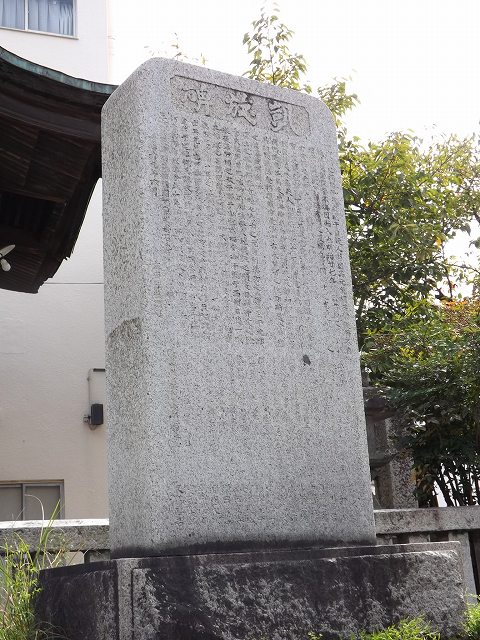 旧国道、人通りの多い狭いバスどおり、上祗園バス停そばに、ちゃんと立っている「日清戦争凱旋碑」だが、気づく人は余りいないようだ。祗園恵比寿神社(右)の敷地内だ。 表 凱旋碑(横に大きく) 右 沼田郡祇園村民建立 備後尾道 石谷常助作 バス停「上祇園」のそば 中の碑文は解読難解、日清戦争に関して明治二十九年六月建立されたのは判る。 下に、廣島縣沼田郡祇園歩兵征清之役從軍功栄祀念誌、陸軍歩兵一等卒、吉野賢之等17名の名が読み取れる。 大分文字が薄くなってきた。 2012年10月5日撮影。 |