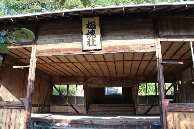 国道54号線から広島北インターへ行く道路の交差点の反対側、川向こうの挟んだ東に地図では「護国神社」とある。車が入れない細い道路を通って川を渡ると小高い丘にあるさびれた感じの神社。社殿には「招魂社」とある。社殿の左にある。