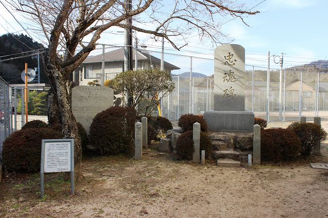 阿戸小学校構内、瀬野と熊野とを結ぶ道路を背にして立っている。