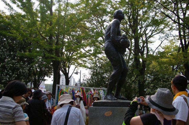 「なぜ あの日は あった なぜいまもつづく 忘れまい あのにくしみを この誓いを」という、単に原爆の被害を訴えているだけでなく、広島への原爆投下の原因や平和への決意を述べた感動的な碑文です。 ただ「にくしみ」は乗り越えなければなりません。多くの被爆者は乗り越えてきました。そういう意味では「歴史的」な碑文かも知れません、と9・11テロに対するブッシュの「報復」戦争に触れて筆者補足。 |