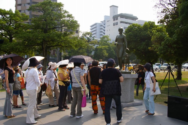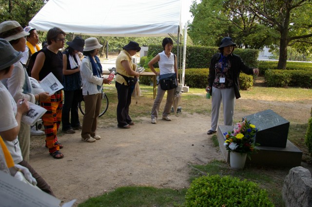 ※被爆アオギリと峠三吉詩碑については、他のグループが囲んでいたため、遠くから説明するしかありませんでした。 |