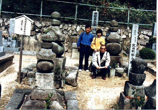 1994年4月9日に訪問した時の武田刑部少輔の墓と豊臣秀吉遺髪の墓前、 |