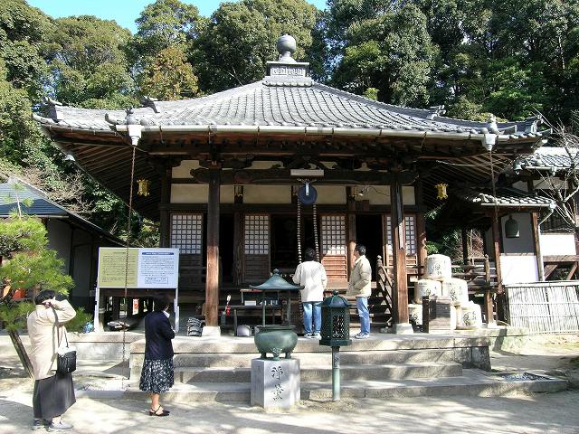 | (1)金堂(木造入母屋造り、こけら葺) 周防の国、山口に大内義隆が建てたものを、安国寺恵瓊が移築したものと言われ、1540年に建立され、1915年に解体修理が行われている。原爆にあったものの、大柱4本が折損、その他屋根瓦等の損傷があった程度で、1950年に災害復旧と屋根の修理が行われ、現在に至る。なお、住職がおられれば、頼めば中も案内して貰える。 写真は2012年5月27日撮影 |