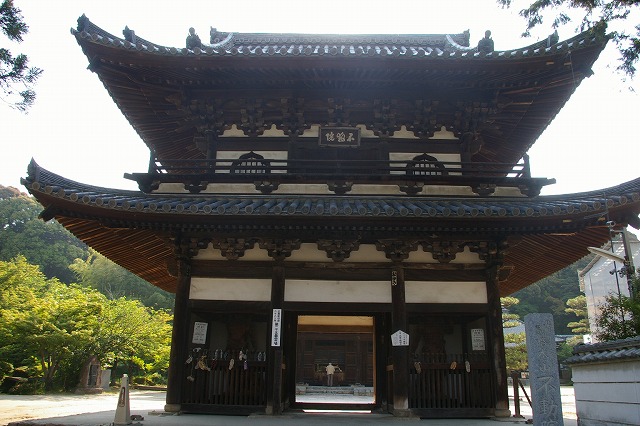 (2)不動院 楼門(木造入母屋造り、二階建て本瓦葺) 安国寺恵瓊が朝鮮から持ち帰った木材を使って、1594年に建立、完成したものと言われている。原爆にも大きな被害はなく、1963年から翌年にかけて解体修理され、現在に至る。 写真は2012年5月27日撮影 |