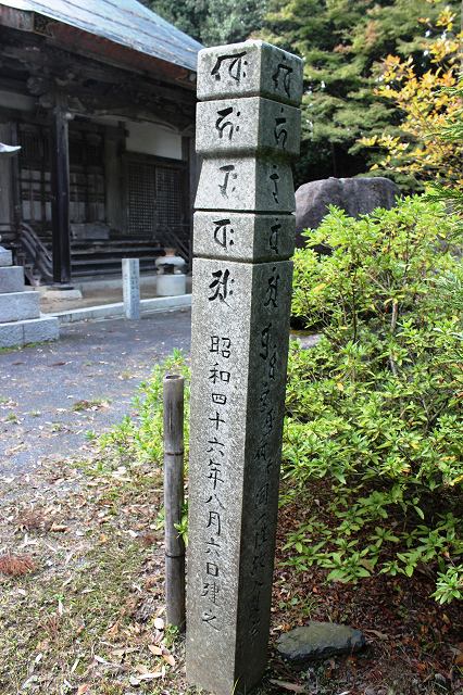 可部の町を見下ろす山の山頂に福王寺がある。国道から「福王寺参道」という標識が出ているが、車は途中までしか昇れず、登山となる。大きな寺である。右の方に棒のようにつつましやかに立っている。「新四国八十八ケ所遍路」の一つらしいが、「原爆慰霊碑」を尋ねてここまでくる人は稀のようだ。