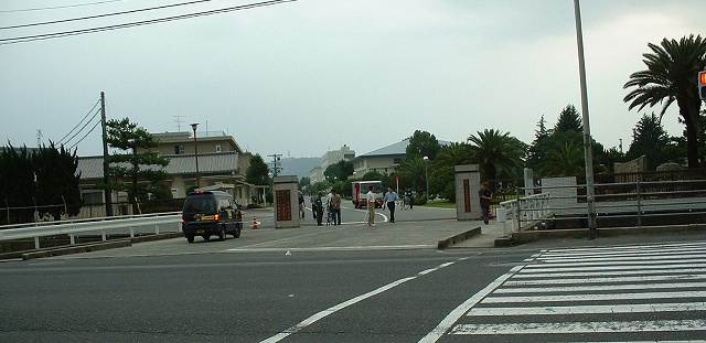 呉が昔海軍、今海上自衛隊なら、広島は昔陸軍、今陸上自衛隊という構図は今も変わっていません。 広島市が合併を呼び掛けている安芸郡海田町に駐屯地の司令部を置き、広島市に編入されている矢野町にまたがった広大な敷地にあります。ここは、1939年、旧陸軍の物資補給所に始まり、1950年に警察予備隊の駐屯地になり、1962年、陸上自衛隊第13師団として発足しました。中国五県に七箇所の駐屯地を持ち、独立して陸上作戦を遂行するに必要な機能を備え、主要な作戦正面を担任する中国方面最大の作戦部隊(定員7100人)として長く存在しました。 写真は2003年6月25日撮影。 |