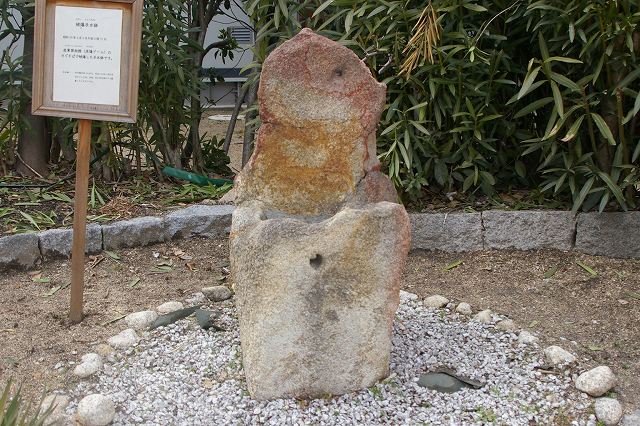 下に東門の向かって左側に、この被爆庭石(原爆ドームの隣の民家にあったもの)があるのを確認、撮影しましたので、追加しておきます。 (20012年2月18日撮影) (説明板)被爆手水鉢 産業奨励館(原爆ドーム)のすぐそばで被爆した手水鉢です。 手水鉢…手や顔を洗うためくぼみをほどこした石。当時、水に花を浮かべて鑑賞していたそうです。 |