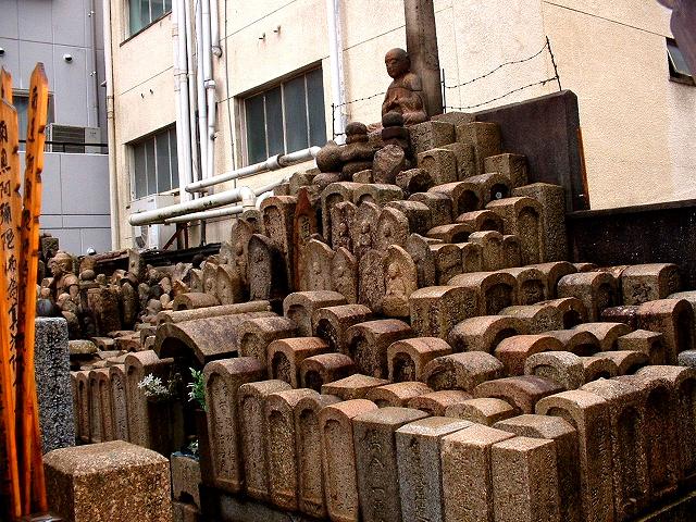 その左手に墓地があるが、今は「参拝者以外立ち入り禁止」という札がはってある。(多くの寺がそうなってしまったのは残念。中に入れば、原爆で痛んだ墓石、昭和二十年八月六日没と刻まれた新しい墓の奥に大量の、一家全滅で無縁となった被爆墓がうずたかく積まれている。 |