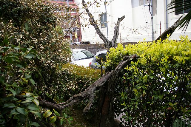 下が枯れた被爆樹サクラ。(2012年4月26日撮影) |