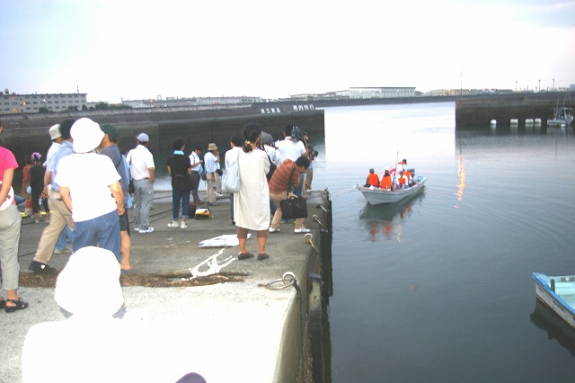 この岸壁には50人ぐらいが集まったかな。 |