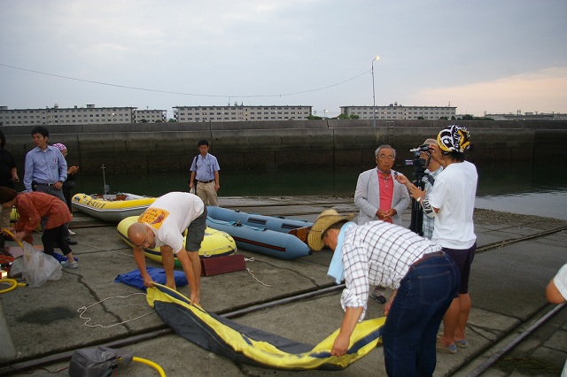 空が白み始めた5時過ぎにゴムボートの準備を始めました。 リムピースホームページで、田村順玄さんが、横須賀平和船団 市川 平さんが、平和フォーラム・八木 隆次さんが海上抗議行動の写真を洋上から撮って公開されていますので、是非覗いて下さい。 筆者は洋上には出ていませんので悪しからず。
