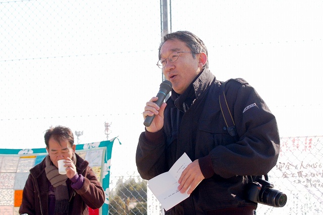 「住民投票を力にする会」の松田一志さん。3月23日に沖縄から前宜野湾市長の伊波洋一さんを呼んで集会を開く。