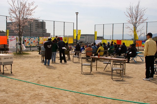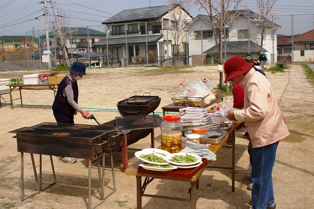 話が終わったら花見なので、焼き肉などの準備がされています。 |
