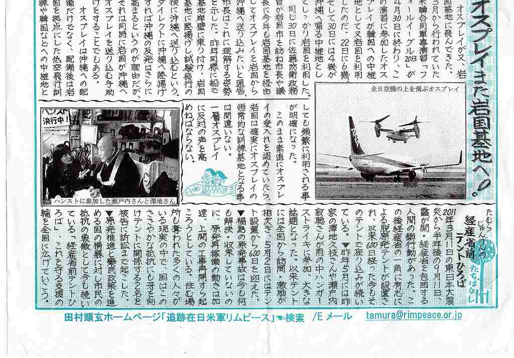 一層オスプレイに反対の声を高めなければならない。 |