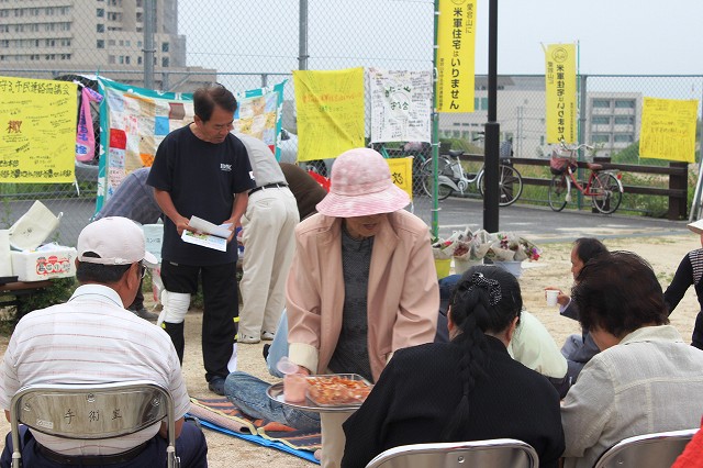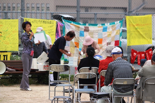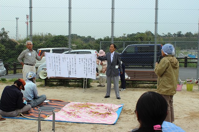 人数がだいぶ減ってしまいました。「守ろう愛宕山」を落合紀久子さんのリードで歌って30分早く閉会。 雨はたいしたことなく、この頃からまた止みましたが、すでに多くの方が帰ってしまわれていました。 |