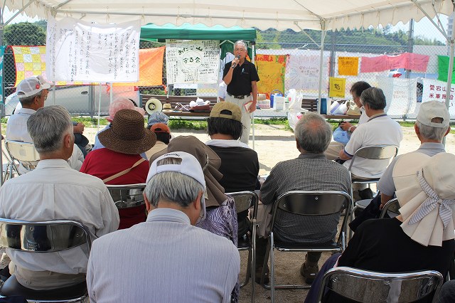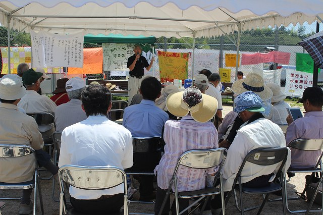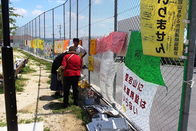 防衛省、岩国市は何時に左藤防衛政務官が来るか、早くから判っていたはず。抗議行動が大きくならないよう、発表をギリギリにしている、と岡村さん。 |