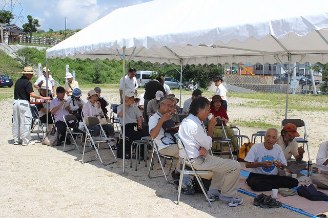 お茶やイリコが出、参加者それぞれがあちこちで談笑しました。 |