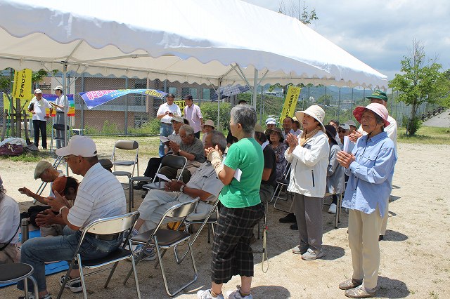 「守ろう愛宕山」の歌を岡村さんと天野さんのリードで合唱。 |