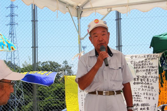 田村順玄さんは、この日は一番早くこの座り込みのための準備に出て来られましたが、この日は前に出てのお話しはされず、もっぱら皆さんのお世話に徹せられておられました。(中央) |