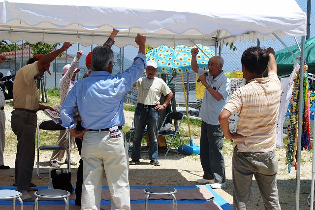 ぼつぼつ時間が来ました。「守ろう愛宕山」を岡村さんの音頭で合唱。 |