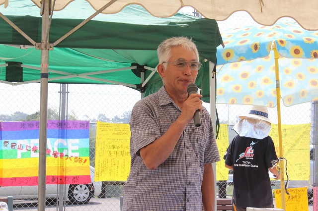 まず、この座り込み、2011年8月21日の開始から3周年ということ。「愛宕山を守る会」の岡村寛代表が挨拶。