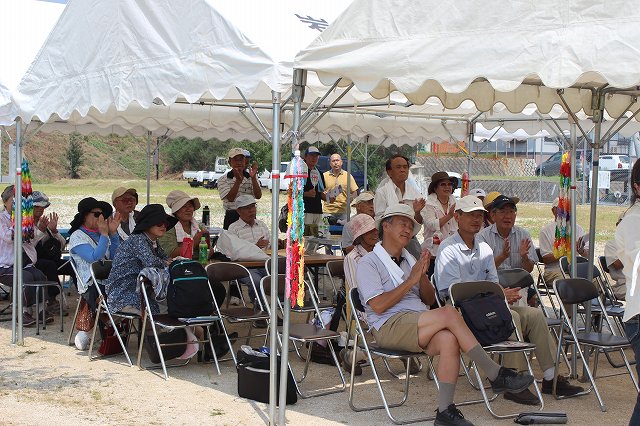 山本久さんの音頭で「ガンバロー」 |