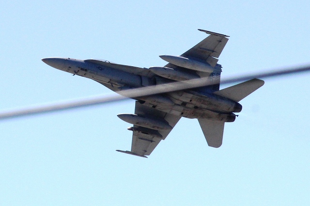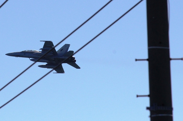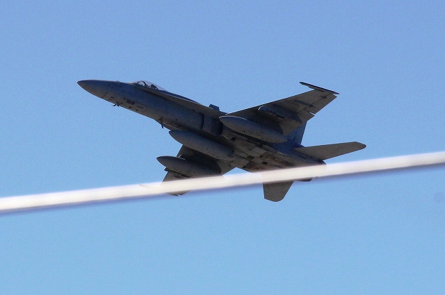先ほどオスプレイと一緒に駐機場にいた米海兵隊 F/A-18D ホーネット戦闘攻撃機 (岩国基地)が滑走路に出て、どんどん飛び始めました。 |