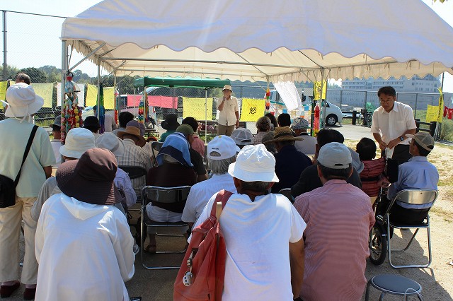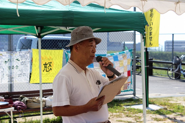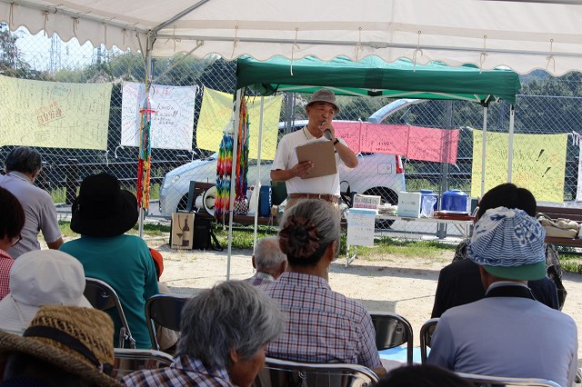 瀬戸内ネット共同代表の一人、周防大島町在住の河井一志さんが前々日、前日(19日、20日)の由宇町、周防大島町の現地調査の報告を含めながら挨拶。