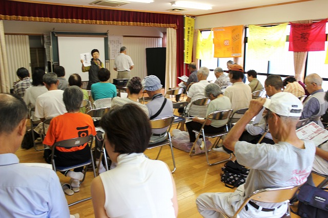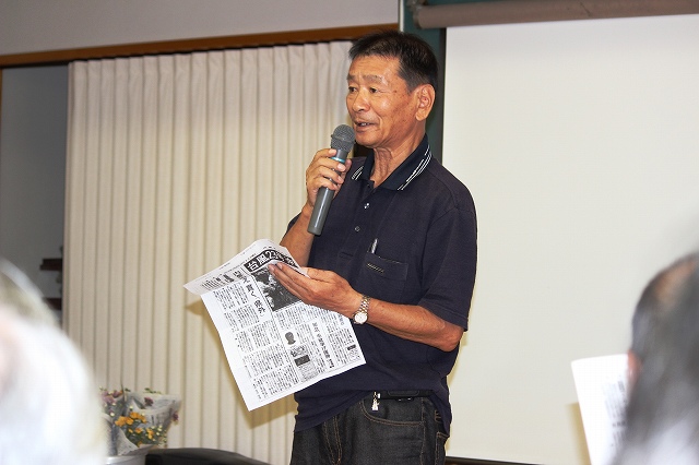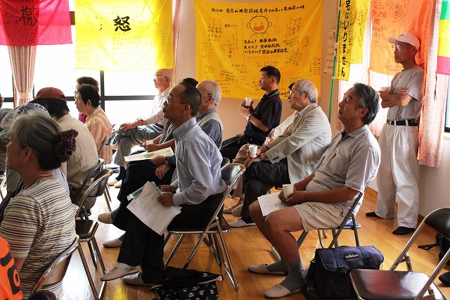 この日の参加者は、37~8名を数えましたが、途中で帰られる方、途中から参される方がかなりおられ、延べ45名ぐらいだったのではないでしょうか。マスコミは1社が取材されていました。 |