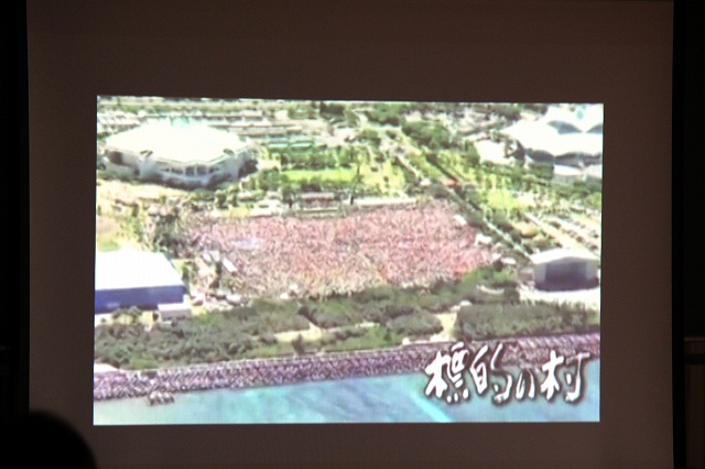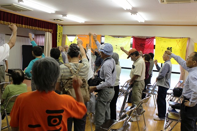 「標的の村」が終わってから、「守ろう愛宕山」を岡村さんの音頭でみんなで合唱。 |