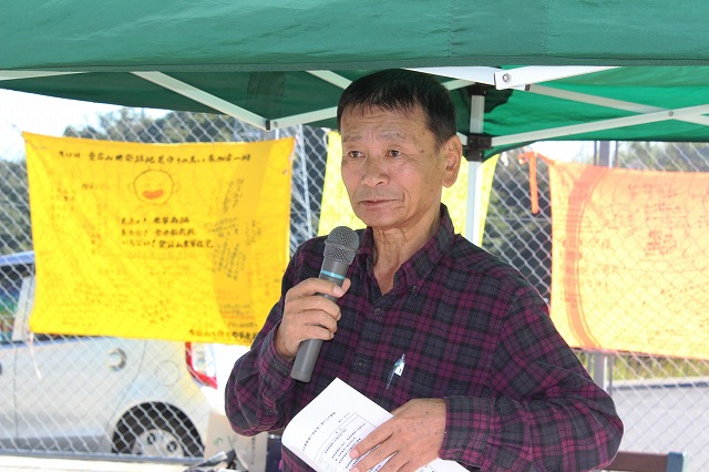この日は「住民投票の成果を活かす岩国市民の会」の藤川俊雄さんが司会。 |