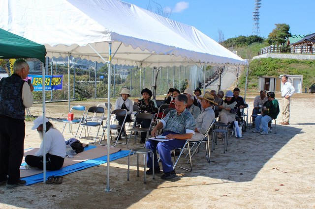 落合紀久子さんの音頭で「守ろう愛宕山」を合唱。早めに終りました。 |