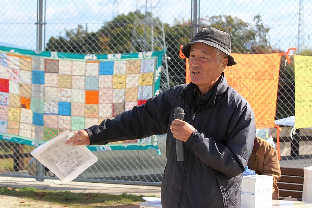 西部住民の会の坂本千尋」さんが、11月23日(土)に行なわれる「広島から考える日米地位協定」という集会について説明。 |