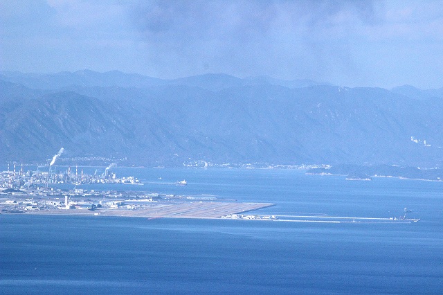 大島大橋。文殊山入り口は、この橋からあまり時間はかかりません。入り口の少し手前にコンビニがありますので、そこで弁当買って、用を済ませ、文殊山山頂に向かっています。 |