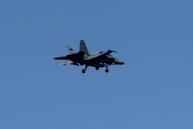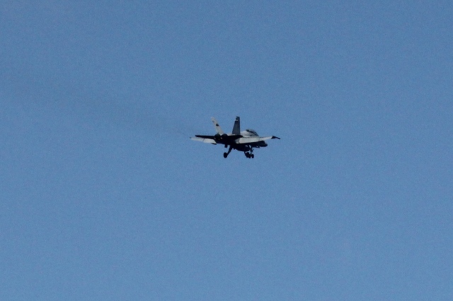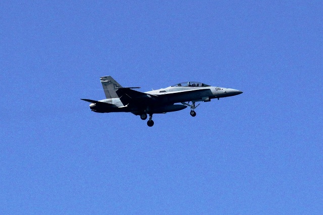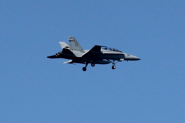 ちょっと忘れ物取りに駐車場の方へ行ってっていたら、轟音が聞こえました。写真取れる場所は頂上展望台のようにはいかず、これがかろうじて撮れた1枚です。3機目の米海兵隊 F/A-18D