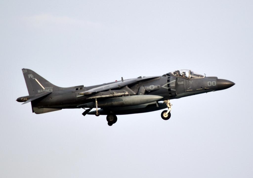 2017年3月16日(木) 米海兵隊 AV-8B ハリアー2 攻撃機(岩国基地)、WL、00番機が旋回(3周目)