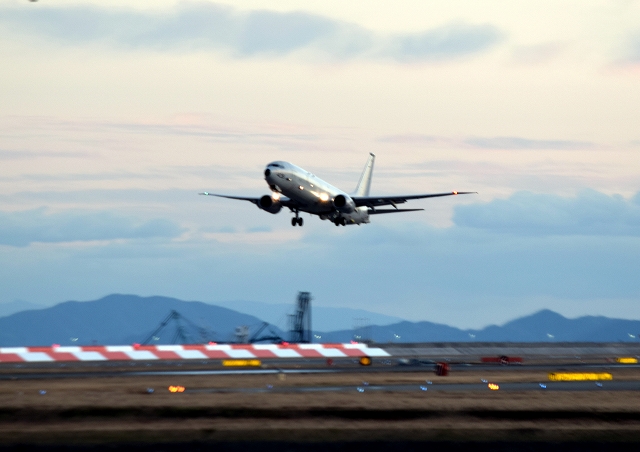 米海軍 P-8A 対潜哨戒機 ポセイドン(嘉手納基地)、439番機がタッチアンドゴーして旋回(6周目) |