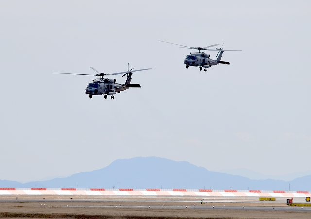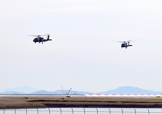 米海軍艦載機 MH-60S 多用途・補給支援ヘリ シーホーク(前)、MH-60R 統合多用途艦載ヘリ(後ろ)(厚木基地) |