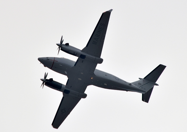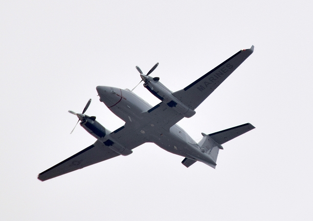 米海兵隊 UC-12W ヒューロン 輸送機(岩国基地)、8206番機が離陸 |