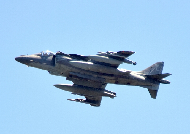 米海兵隊 AV-8B ハリアー2 攻撃機(岩国基地)、WL、22番機が旋回 |